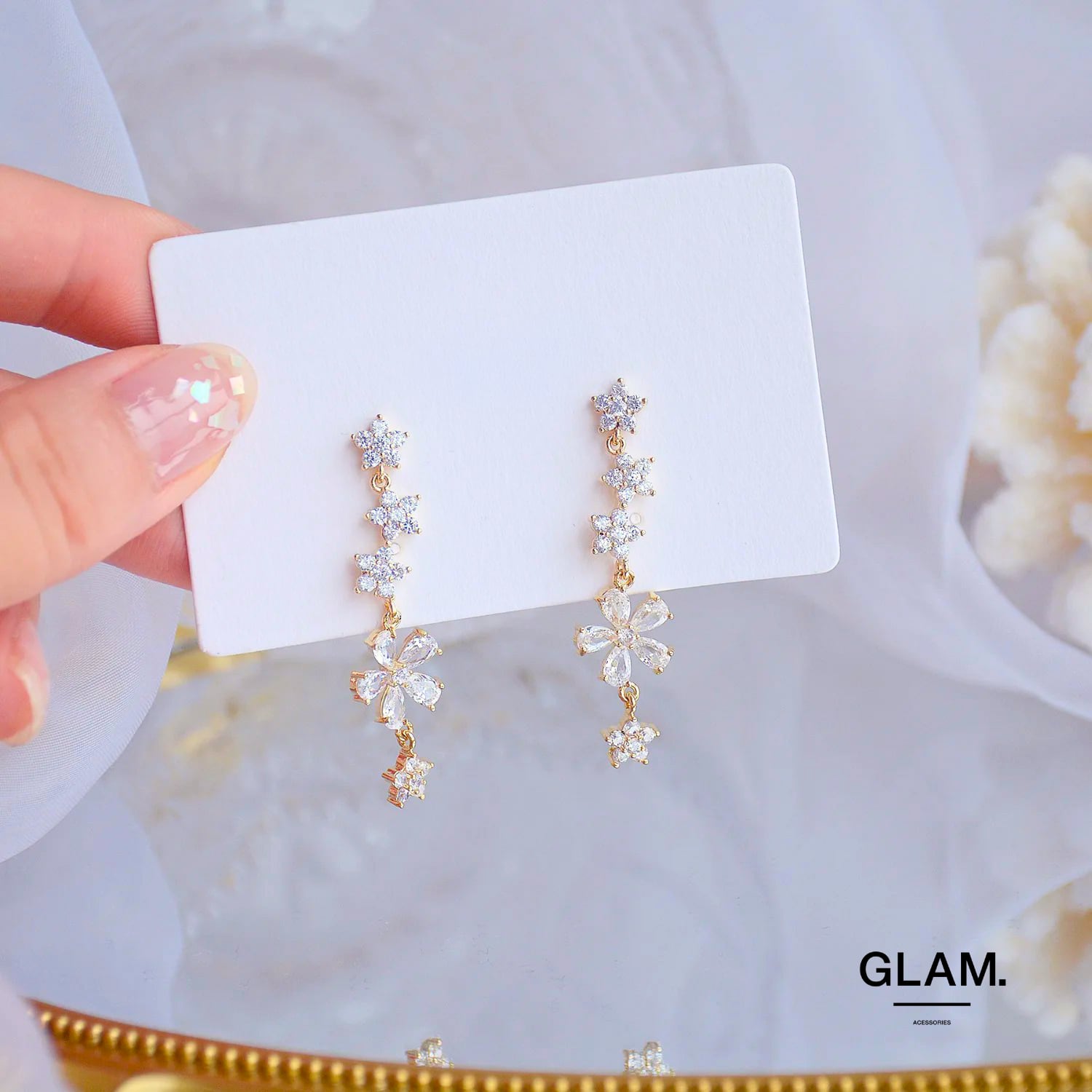 フローラルスウィングピアスは、華やかなフローラルデザインと動きを楽しめるアイテムです。美しい花をモチーフにしたこのピアスは、耳元に女性らしさを演出し、日常のカジュアルなスタイルから特別な日まで、幅広いシーンでお使いいただけます。