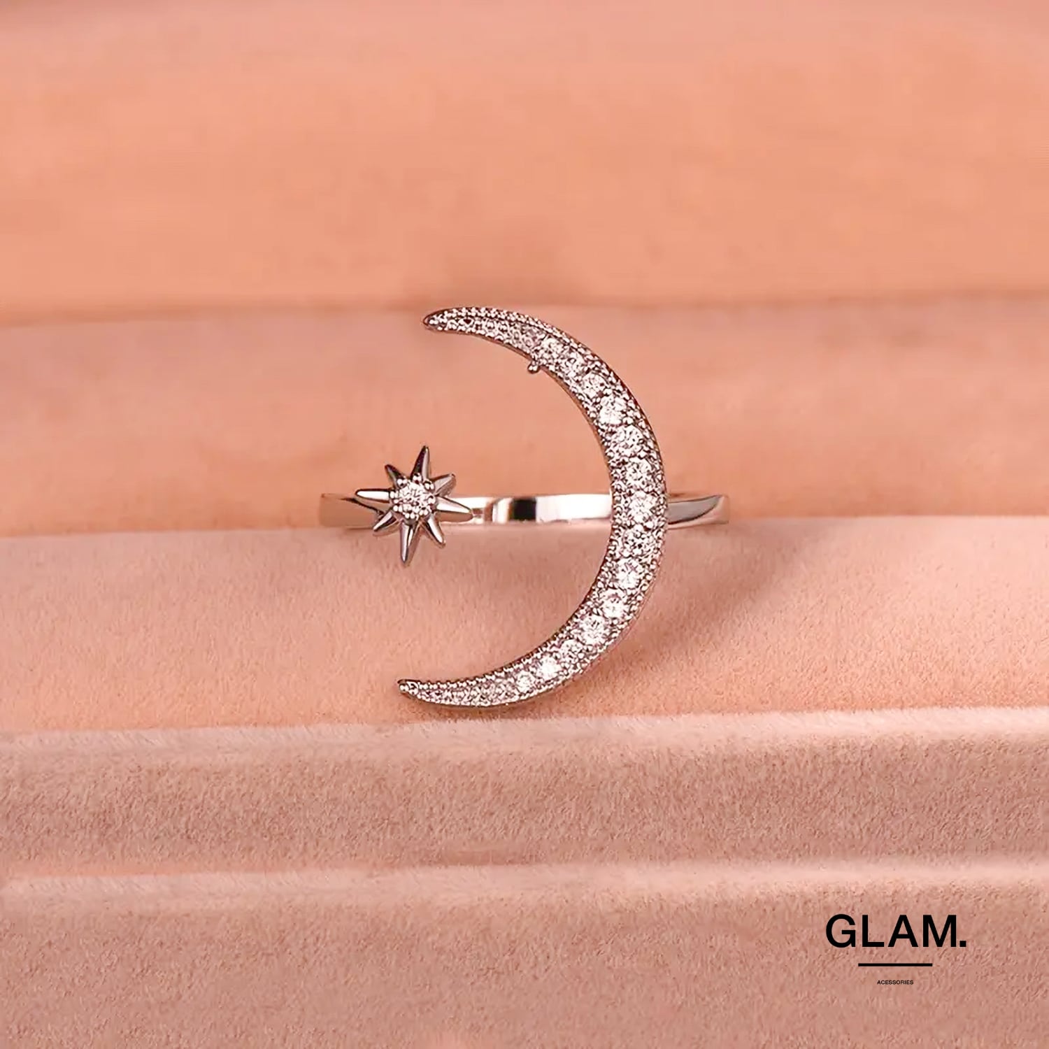 ラグジュアリームーンリングは、洗練されたデザインと高級感あふれる仕上がりが特長のアイテムです。美しいジルコニアが煌めき、指元を優雅に演出します。日常のカジュアルなスタイルから特別な日まで、あらゆるシーンでお使いいただけます。